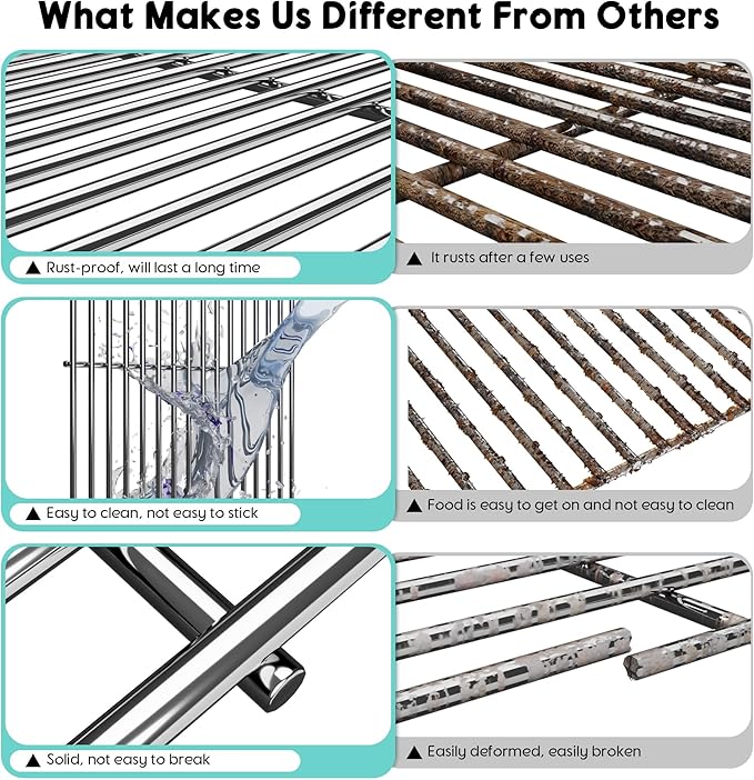 - Easy to Clean: Stainless steel cooking grill grates is smooth and non-stick, after use only need to use water with detergent gently brushing can be perfectly cleaned, better than cast iron mesh easier to clean