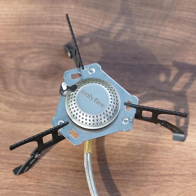 - STURDY AND STABLE COOKING PLATFORM: Constructed with thick-gauge stainless steel and copper triangle brackets, this propane backpacking stove ensures a stable and secure pot support. Serrated pot-support arms prevent unwanted pot shifts, maintaining a steady cooking experience.