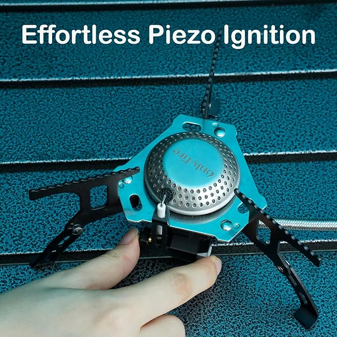 - EFFORTLESS IGNITION: Experience enjoyable ignition with the integrated piezo ignition switch—no need for extra flint.The protable and sturdy backpacking stove makes your camping easier and simpler.