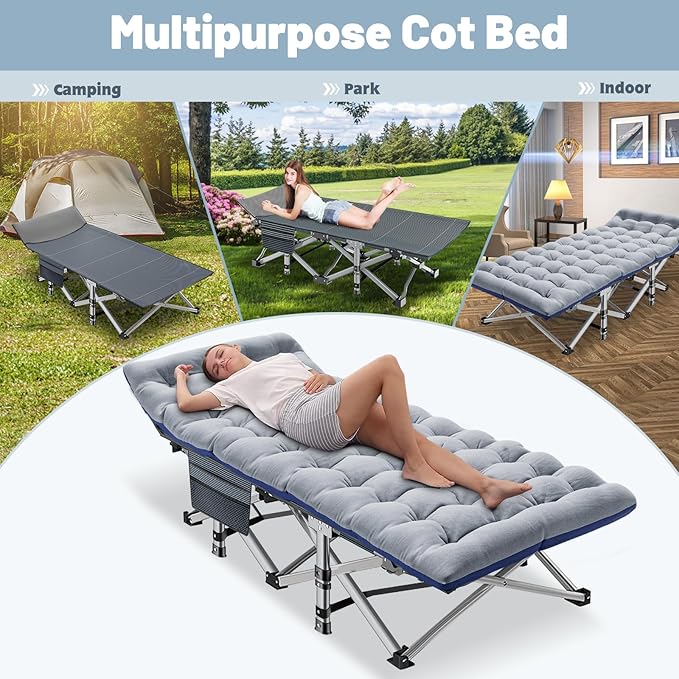- Wide Range of Applications: Great folding cot, outdoor cot, camping cot with mattress, for hiking, camping, traveling, hunting or as a snap cot in the office; also a perfect temporary bed when guests visit your home