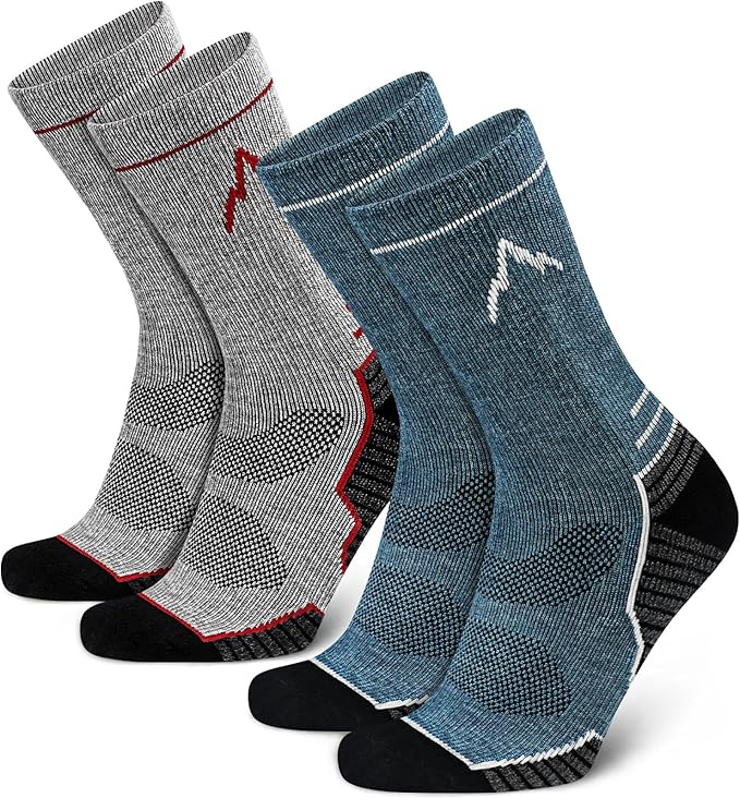 - Versatile Style: Mens hiking socks wick away moisture and keep feet dry and comfortable; Reinforced heel and toe for maximum comfort and protection; Perfect for hiking, running, camping, and everyday wear