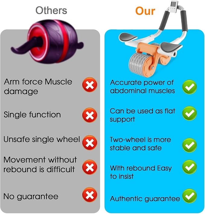 - 【2 in 1 Ab Roller Wheel & Flat Support Machine】Scientific force, automatic rebound, easy to use. Five layers of anti-slip materials, anti-noise and wear-resistant: anti-slip layer, reinforcement layer, shock absorption layer, noise reduction layer, support layer