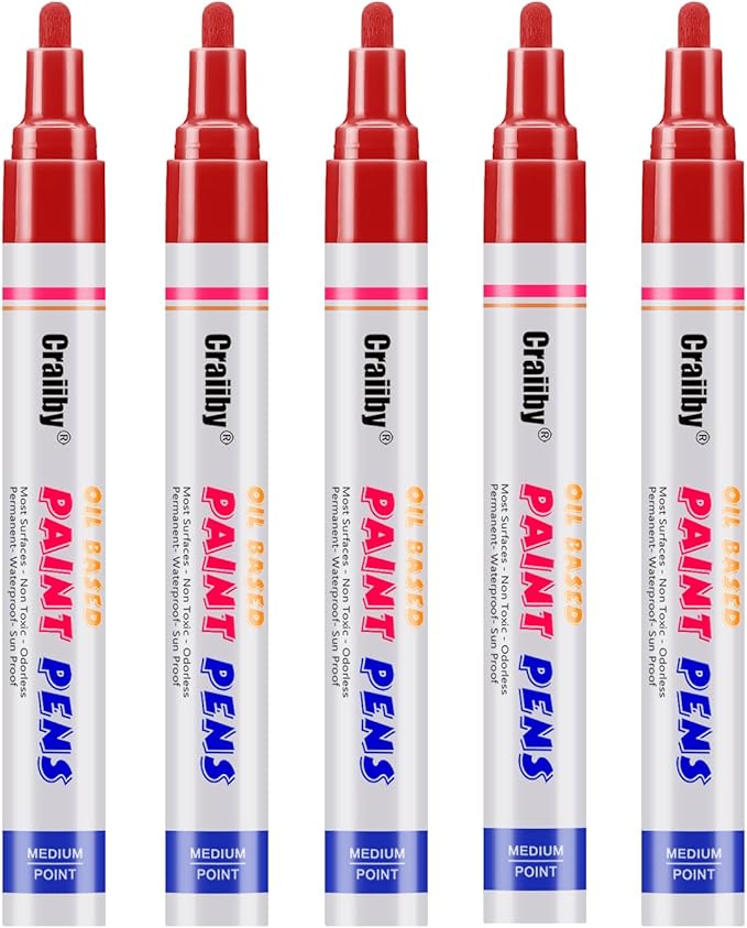 Red Paint Markers, 5 Pack Oil-Based Waterproof Quick Dry Permanent Paint Pen Set for Rocks Painting, Wood, Fabric, Plastic, Canvas, Glass, Mugs, Metal, Tire, Stone, DIY Craft