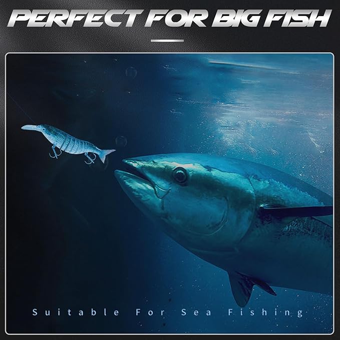 - 11 SEGMENTS REALISTIC LURE - Designed with 11 segmented body sections, the big fishing lure can sink slowly and deliver a natural S-shaped swimming action at any speed, which will bring on quicker bites.