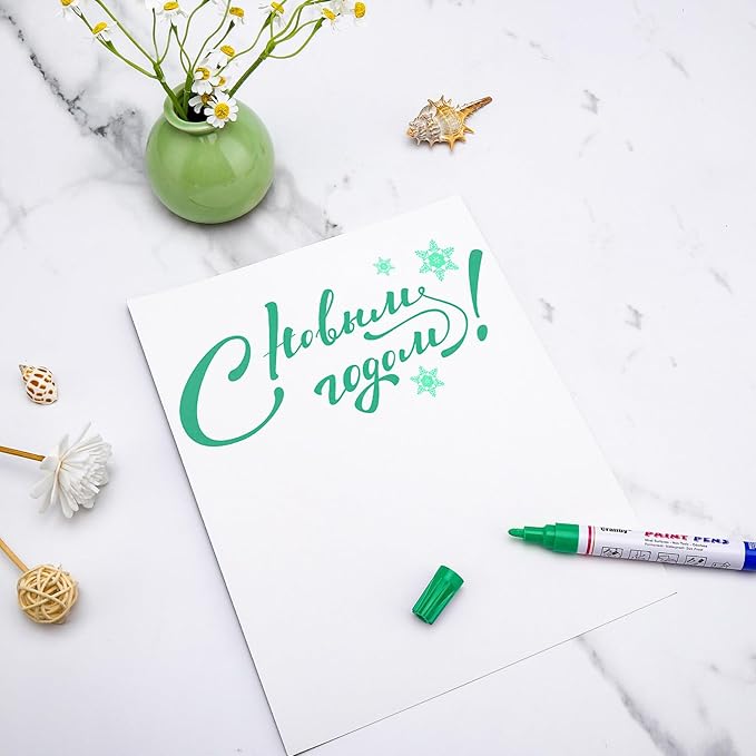 Green Paint Markers, 5 Pack Oil-Based Waterproof Quick Dry Permanent Paint Pen Set for Rocks Painting, Wood, Fabric, Plastic, Canvas, Glass, Mugs, Metal, Tire, Stone, DIY Craft