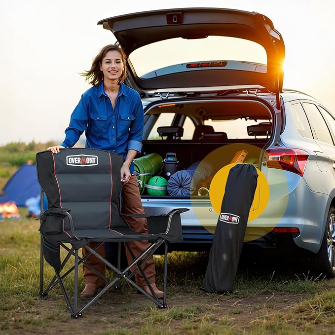 - 【Durable Oxford Fabric】Overmont oversized folding chair measures 39x22x22in and is made of double-layer tear-resistant 600D Oxford fabric with sponge cushion, providing excellent durability and breathability.