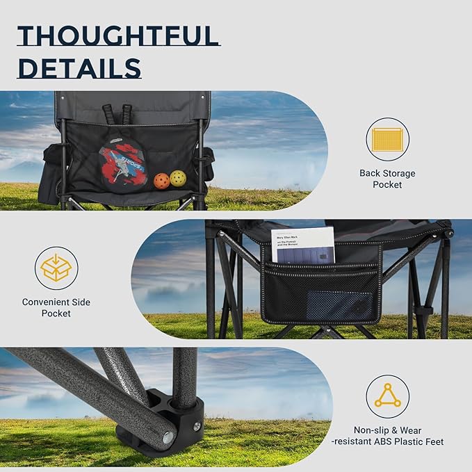Overmont Oversized Folding Camping Chair - 450lbs Support with Padded Cushion Cooler Pockets - Heavy Duty Collapsible Chairs for Sports Garden Beach Fishing