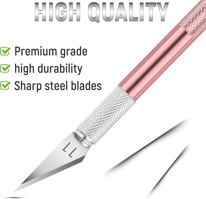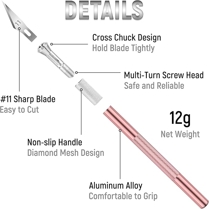 - ✅【Convenient & Portable】Cross chuck design, fastened blade clamping, convenient to use, easy to replace hobby knife blades. Craft knife cap to prevent scratches. Light and handy, easy to carry.