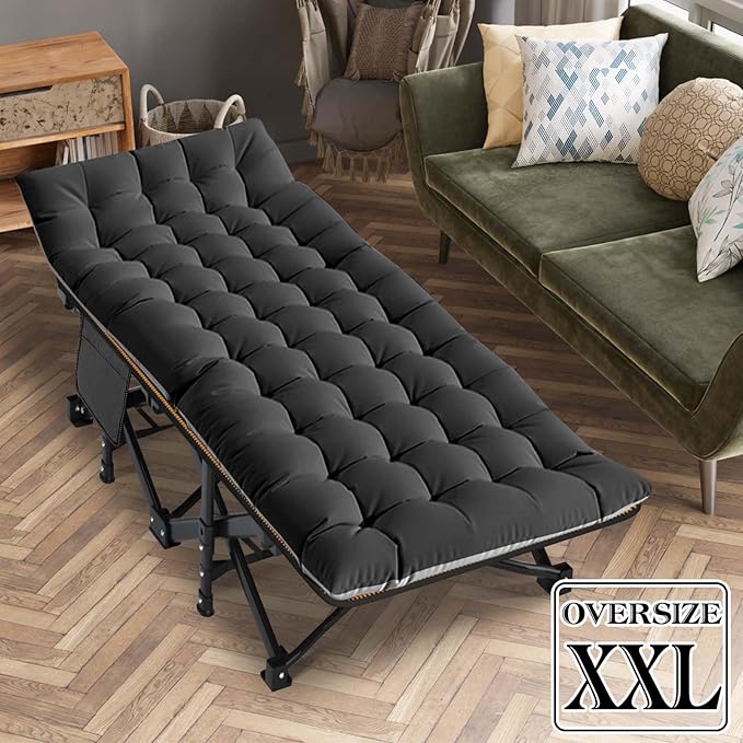 LILYPELLE Folding Camping Cot, Extra Wide Heavy Duty Sleeping Cots with Carry Bag, Double Layer Oxford Portable Travel Camp Cots for Home, Office Nap and Outdoor Beach