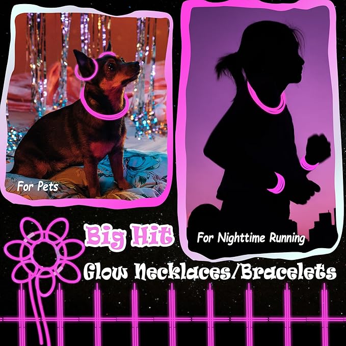 - Eye-catching & Longer Lasting - The glow sticks are brightest for 6-8 hours and then slowly fade away. They are bright enough to be easily seen shortly after activation. With these glow bracelets and necklaces, kids, adults and pets will be even more visible and safe and easier to spot while walking around at night. Fun night time party favors to help you steal the show!