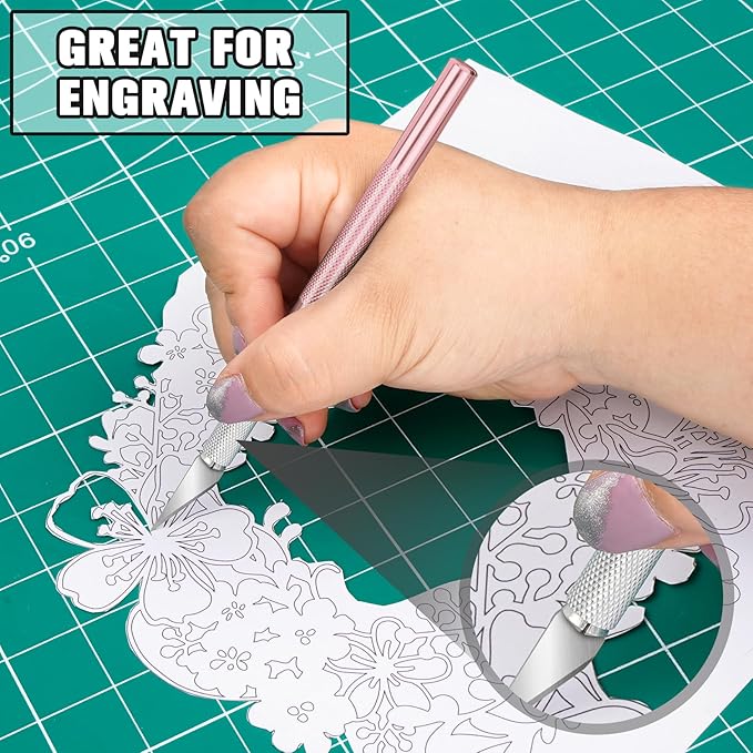 DIYSELF 2 Pack Exacto Knife for Crafts, Precision Knife Exacto Blades, Hobby Knife for Models, Craft Knife for Scrapbooking, Carving Knife for Stencil, Art, 20 Extra Blades (Pink)
