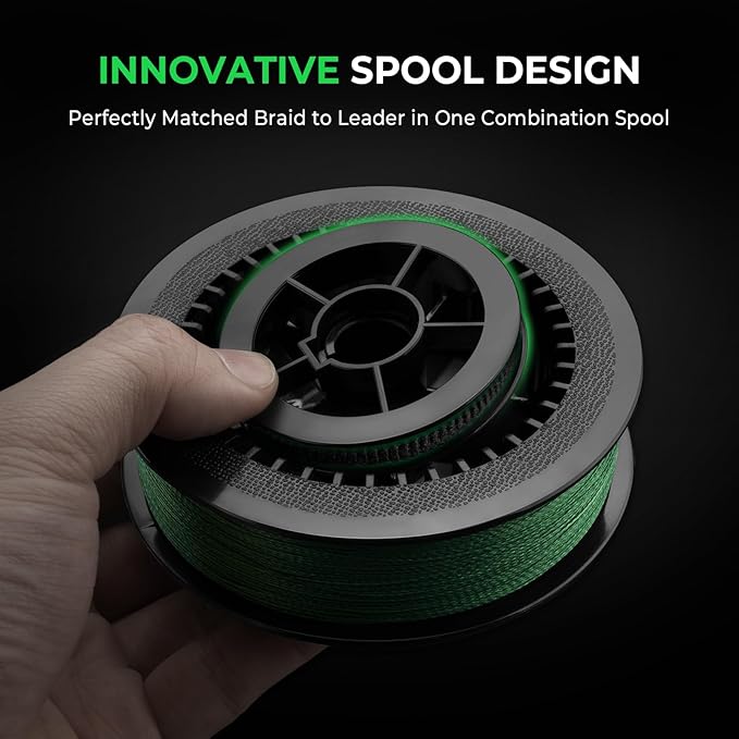 - INNOVATIVE SPOOL DESIGN HOUSES MAINLINE AND LEADER – Housed in one convenient spool within a spool design, Destron Complete 4X braided fishing line matched with a proven performer TriPolymer Advanced Monofilament leader takes the guesswork out of which leader to use with your mainline. The outside spool contains the braided mainline and the inner spool contains the leader spool. Once the mainline is placed onto your reel, you can merely unlock the smaller inner leader spool to be used as needed.