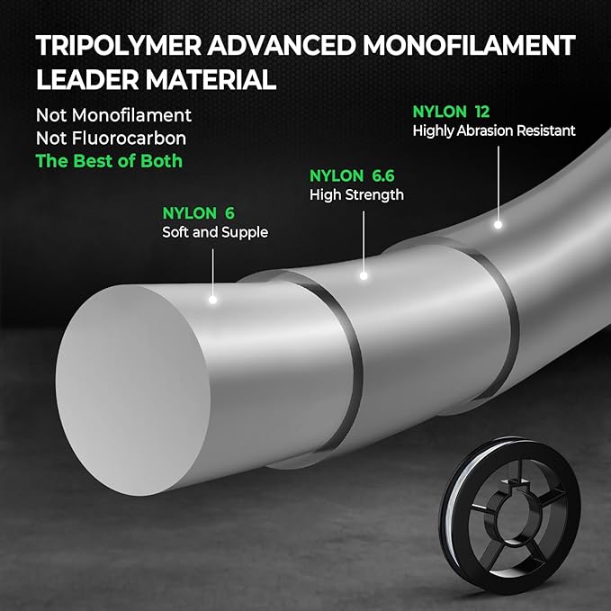 - PROVEN PERFORMANCE TRIPOLYMER LEADER – High-quality TriPolymer Advanced Monofilament leader is included with every spool of Destron Complete 4X. With Tri-Extrusion technology, TriPolymer Advanced Monofilament is a proven performer. Super strong, small diameter, very supple and virtually invisible underwater. Matched with Destron's exceptional quality 4-carrier PE braided fishing line, this is a combination that will perform when the bite is on.
