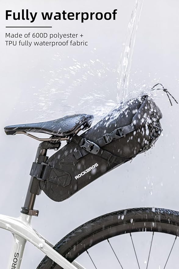 ROCKBROS Bikepacking Bag Bike Saddle Bag Large Capacity Bikepacking Seat Bag Waterproof Bike Seat Bag Max 3L