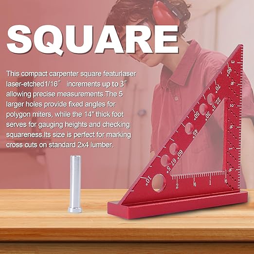 - 📐Easy To Use: With outer dimensions 3.7" x 3.7” x 0.78", this mini carpenter square is perfect for detailed work and easily fits in work apron, tool belt, and your pocket, especially handy when up on a ladder.