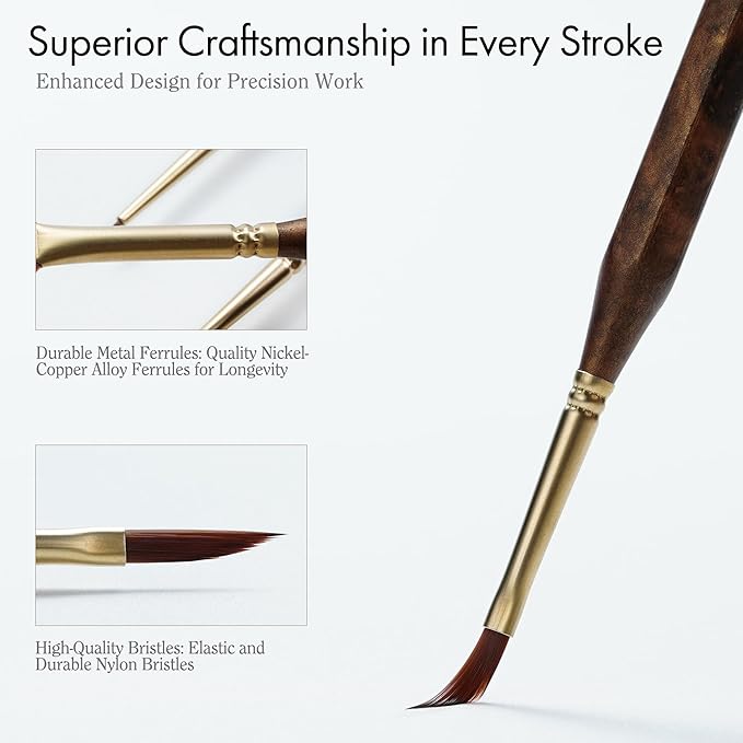 - Superior Craftsmanship: From the durable metal ferrules made of quality nickel-copper alloy to the highly elastic and durable nylon bristles, every aspect of these brushes is designed for precision work. The bristle type and number are clearly printed on the handle for quick identification, making your creative process smoother