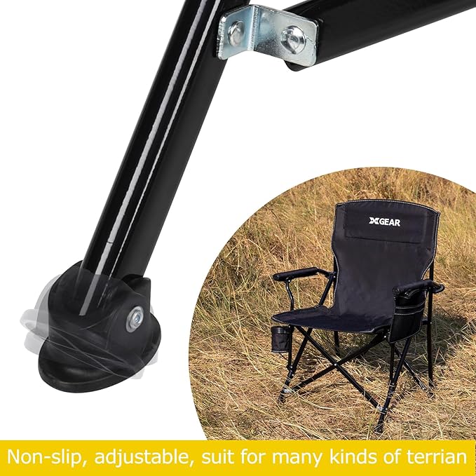 XGEAR Camping Chair with Padded Hard Armrest, Sturdy Folding Camp Chair with Cup Holder, Storage Pockets Carry Bag Included, Support to 400 lbs