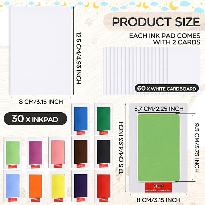 - Comprehensive Package for Long Lasting Memories: our newborn footprint kit is bundled with 30 ink pads and 60 imprint cards, total of 90 pieces; This comprehensive package ensures you have ample resources to create endless keepsakes and keeps your memories vivid and intact