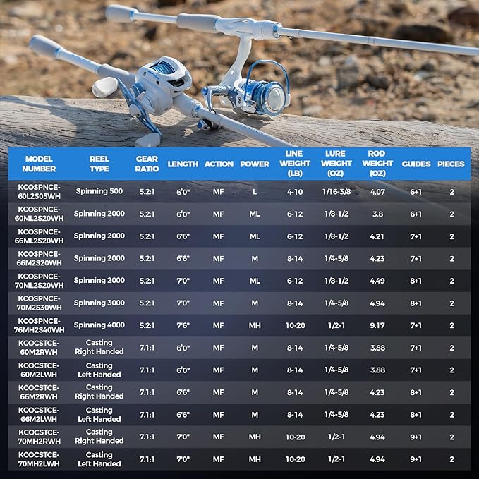 - Includes Centron Lite Spinning Reel – Each combo includes a perfectly matched KastKing Centron Lite spinning reel that matches the rod and the type of fish that it is intended for. Reel sizes start at a compact size 2000 and go all the way to a powerful size 4000 that is perfect for the 7’6” medium heavy action rod intended for Catfish, Salmon and Steelhead.