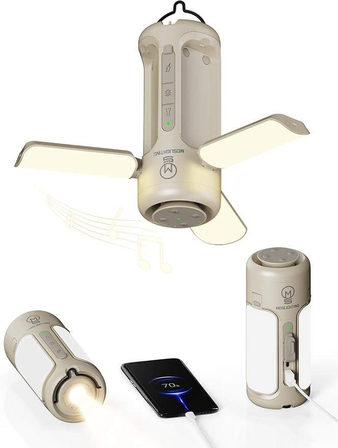 - High Capacity and Rechargeable: MOSLIGHTING Folding camping lantern built-in 10000mAh rechargeable battery with USB outport which support charge your dead phone or device and over 60/30 hours running time in lowest brightness / Bluetooth Speaker.