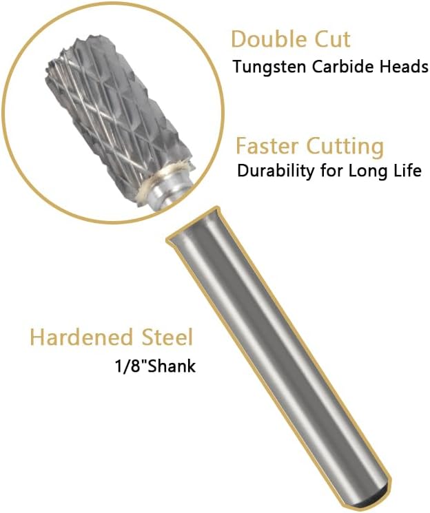 - Characteristics - 1/8" Shank fit for most rotary tools and grinders. This die grinder bit set is easy to grasp and use, safe and reliable; double cut tooth angle which prevents chipping.It can be used on all types of metals, including stainless steel and hardened steel, as well as wood, jade and marble.