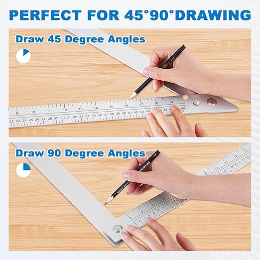- 【Sturdy and Durable】 This framing tool for woodworking is made of high quality aluminum alloy, durable, waterproof and wear-resistant. With thickened ruler body (2.86mm) and rivets for reinforcement, which can provide long term strength and long time of use.