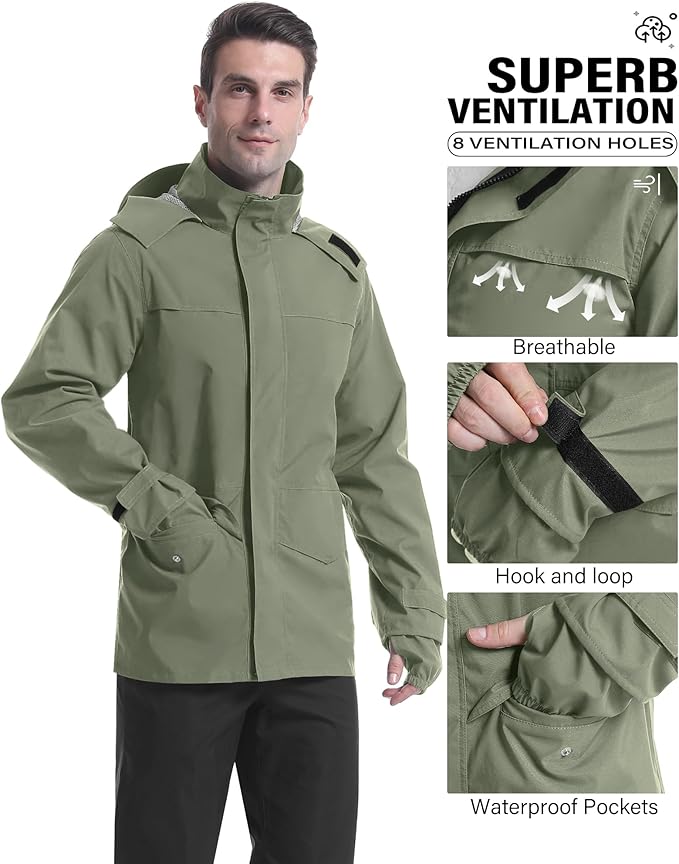 - Breathability: Our raincoat has 8 ventilation holes to increase air circulation and make the raincoat more breathable. There is cover on the ventilation holes so the rainwater won't enter the coat. Breathability rating: 3000g/m2/24 hours