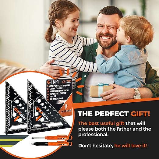 - WORK FASTER & SMARTER - Save precious time on woodworking with our new rafter square. Easily measure, trace, and take angles using only one woodworking square! No need to bring a bulky toolbox. With our 6-in-1 carpenter tools, you have everything you need to work quickly and efficiently!