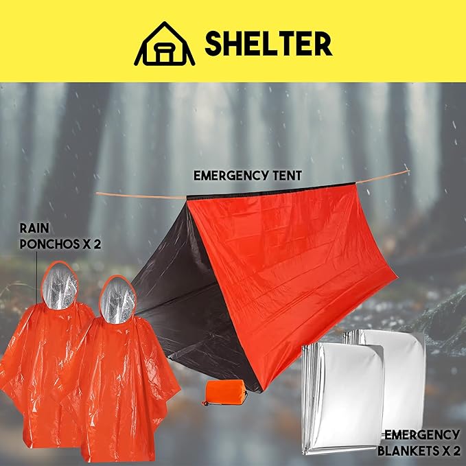 - Essential Tools for Unforeseen Challenges: Equip yourself with indispensable tools like Paracord for multifunctional use, a Folding Stove for cooking and heat, an LED Flashlight ensuring visibility during dark hours, a Compass for precise navigation, and a Whistle for signaling emergencies. Ensure comfort and protection against the elements with Emergency Blankets and a Poncho.