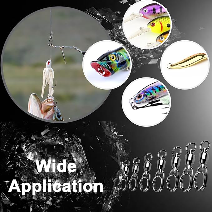 - Multiple ball bearing swivels snap : The ball bearing design ensures that it can rotate at high speed in both salt and fresh water, which is smoother than ordinary steel snap swivels saltwater , preventing the line from getting tangled and knotted, and making fishing a much happier thing.