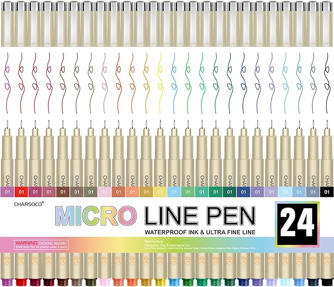 - 【Multi-color Micro Pens】Included in this set are 24 colors line art pens with 01/0.25mm. These colors will satisfy your every need. These Micro Pens are excellent for sketching, note-taking, hand lettering, and artistic expression.