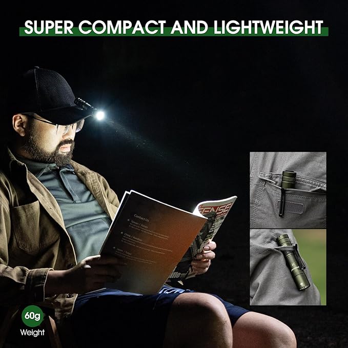 - COMPACT and PORTABLE: Measuring a mere 3.72 inches and weighing only 60 grams, the small flashlights powerful take up minimal pocket space, maximizing your portability. Equipped with a handy clip, effortlessly secure PIOOCAN L2 pocket flashlight to your jacket, backpack, hat, or belt for easy access on your journeys.