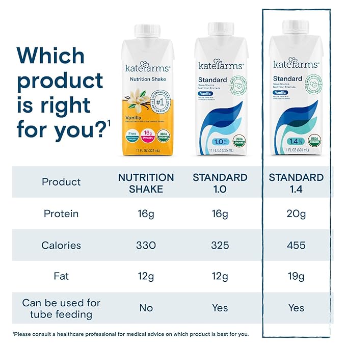 KATE FARMS Organic 1.4 High Calorie Nutrition Shake, Vanilla, 20g Protein, 27 Vitamins and Minerals, Meal Replacement, 11 oz (6 Pack)