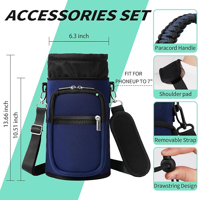 • 【Fit for Most Bottles】Designed to accommodate most 128 oz water bottles, including vacuum insulated bottles, sports bottles, and feeding bottles from various brands. The top features a drawstring, making it easy to insert and remove your bottle while preventing it from slipping out.