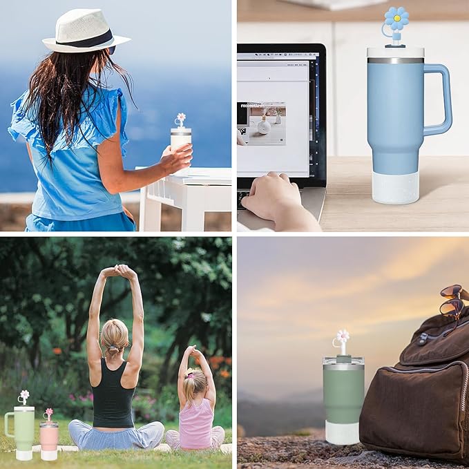 - Package Includes - The stanley cup accessories set includes 2 Stanley straw cover cap, 2 square spill stoppers and 2 round lid leak stoppers, 3 pcs flowers straw covers and 1pcs protective bling silicone boot sleeve, specially designed for Stanley Adventure Quencher 40oz and Stanley IceFlow 20oz 30oz tumblers water bottles. Straw covers match for 9-10mm straws.