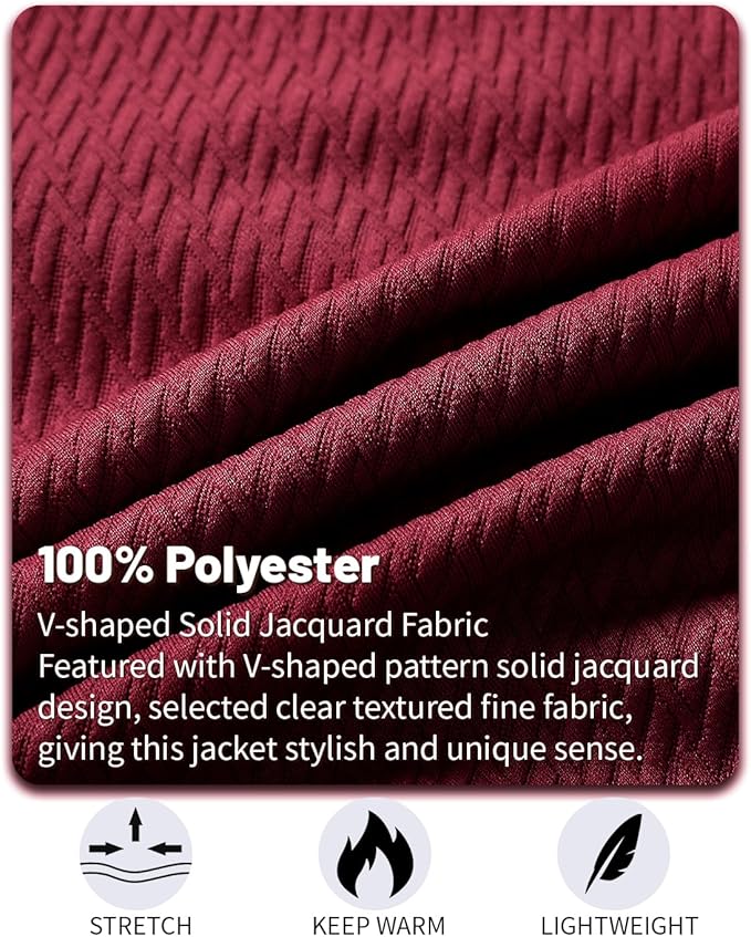 - 【STYLISH DESIGN】: Mens Casual Jacket designed with a full zip, ribbed hem and cuffs, left arm with decorative zipper and 2 side pockets on the front. Featured with V-shaped pattern solid jacquard design, selected clear textured fine fabric, giving this jacket stylish and unique sense.