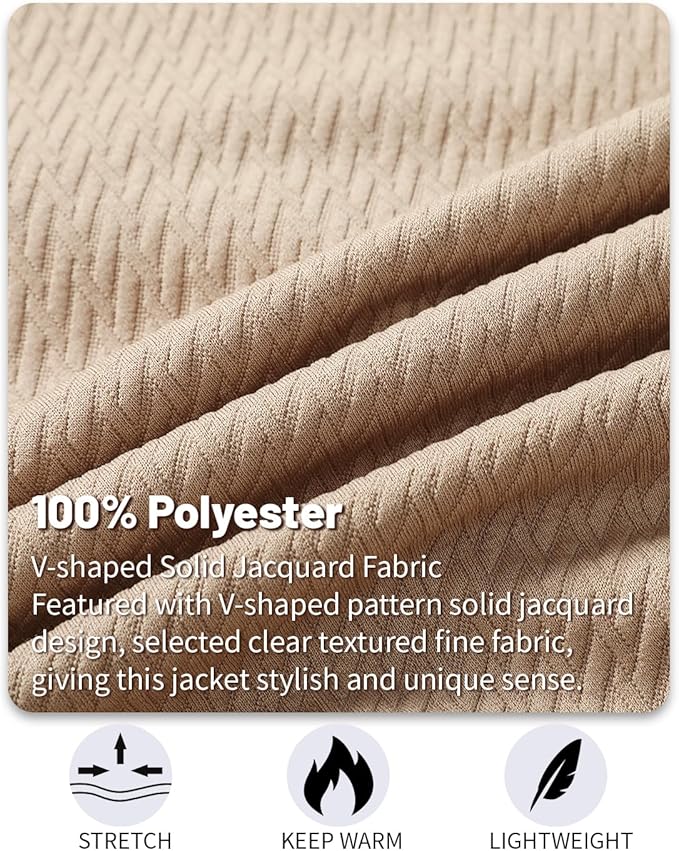 - 【STYLISH DESIGN】: Mens Casual Jacket designed with a full zip, ribbed hem and cuffs, left arm with decorative zipper and 2 side pockets on the front. Featured with V-shaped pattern solid jacquard design, selected clear textured fine fabric, giving this jacket stylish and unique sense.