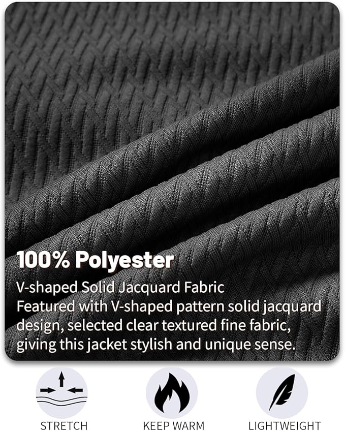 - 【STYLISH DESIGN】: Mens Casual Jacket designed with a full zip, ribbed hem and cuffs, left arm with decorative zipper and 2 side pockets on the front. Featured with V-shaped pattern solid jacquard design, selected clear textured fine fabric, giving this jacket stylish and unique sense.