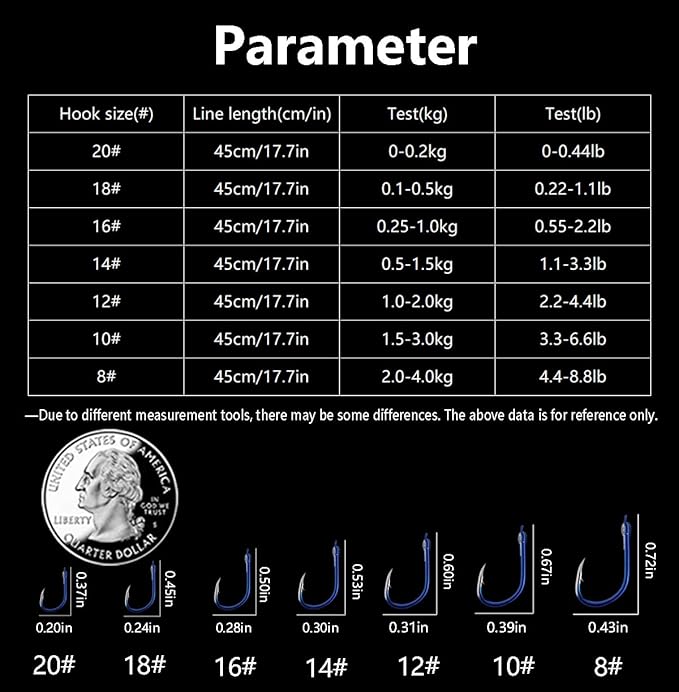- Condition: The hook is relatively small, suitable for fishing weight about 0lb-8.8lb. Hook size, line length and test refer to the picture 2 data pls. Two hooks tethered together and you can also cut it open, thank you