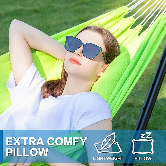 PNAEUT Double Hammocks with Stand for Outside, Portable Space Saving Heavy-Duty Steel Stand for Indoor Outdoor Patio with Carrying Bag, 450 lbs Capacity (Green)