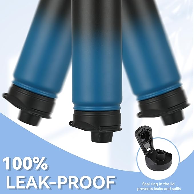 HASLE OUTFITTERS Insulated Water Bottle 22 oz Double Wall Stainless Steel Water Bottle Wide Mouth with Straw Lid & Spout Lid Keeps Cold or Hot(Blue Black Gradient,1)