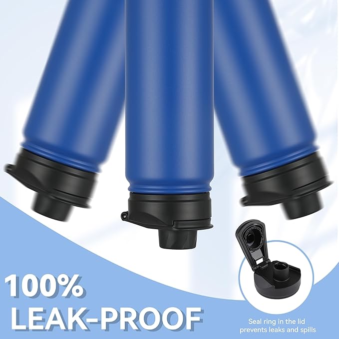 - 【Spout Lid & Straw Lid】 This water bottle comes with 2 lids: an innovative leak-proof spout lid and a newly improved straw lid that has been enhanced for better flow. Easily fill your water bottle with ice and clean it through the wide mouth opening. Both allow easy one-handed or hands free sipping, they are designed for you to drink anytime, anywhere.