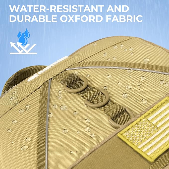 - WATER-RESISTANT AND DURABLE: Crafted from rugged high-density Oxford fabric with a water-resistant PVC coating, this backpack protects your gear from moisture.