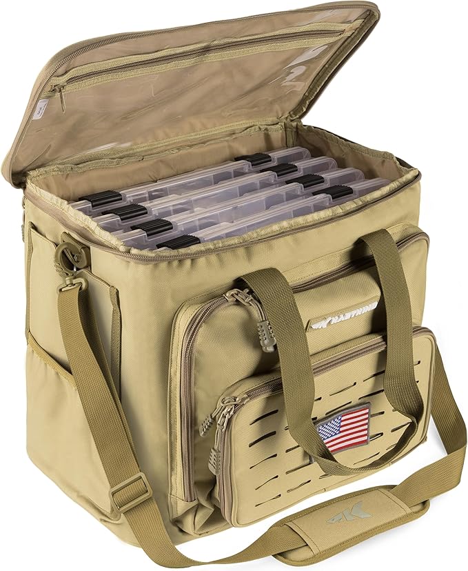 KastKing Karryall Fishing Tackle Bags with 4 * 3700 Tackle Trays, Fishing Bags for Saltwater or Freshwater Fishing - Fishing Gear Storage, Khaki