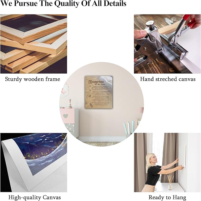 • 🌟 FOOTPRINTS IN THE SAND Artwork - Our "FOOTPRINTS IN THE SAND" canvas prints wall art have five common sizes that can turn any room into a focal point for a collection space. Canvas Wall Art poster size is 12 x 18 inches to 32 x 48 Inches. This Modern Christian Religious Poem canvas wall art measures 18x24 inches, Please measure the wall to choose the right canvas size before purchasing! Shop our wide selection of canvas wall art by color, size, or style!