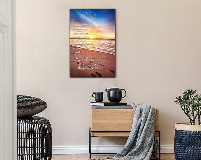 • 🌟 FOOTPRINTS IN THE SAND Artwork - Our "FOOTPRINTS IN THE SAND" canvas prints wall art have five common sizes that can turn any room into a focal point for a collection space. Canvas Wall Art poster size is 12 x 18 inches to 32 x 48 Inches. This Modern Christian Religious Poem canvas wall art measures 28x40 inches, Please measure the wall to choose the right canvas size before purchasing! Shop our wide selection of canvas wall art by color, size, or style!