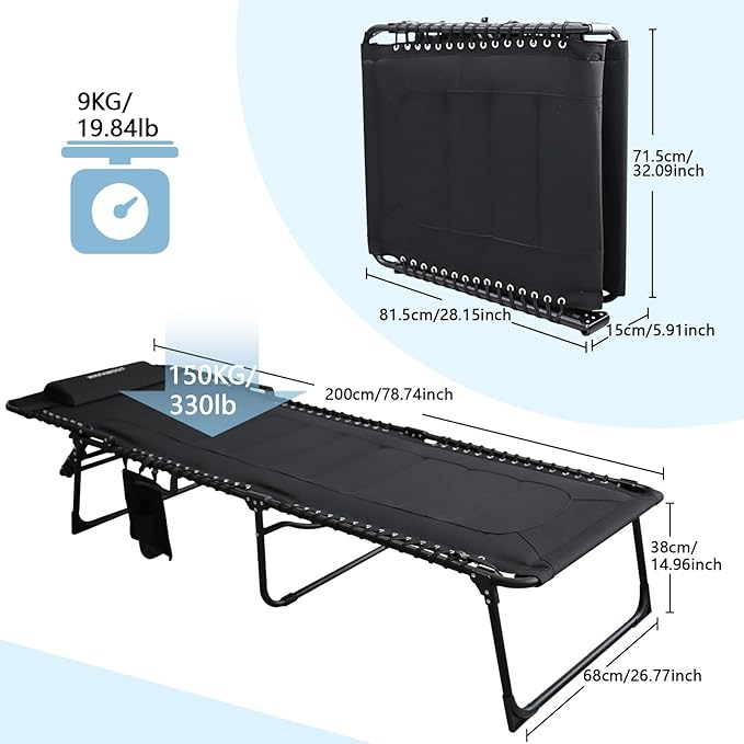 - Double cotton design: The unique double-layer cotton design is more comfortable and relaxed, providing the perfect balance between firmness and softness,supporting up to 330 pounds.Outdoor Patio Lounge Chair features a reinforced heavy-duty steel tube frame and is crafted with 600D*600D Oxford fabric, ensuring stability and durability.With unfolded dimensions of 78.74*26.77*14.96 inches, it is suitable for individuals up to 6.5 feet tall.