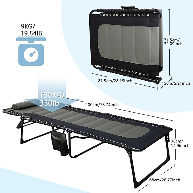 - Easy to set up and carry: The foldable reclining chair can be easily assembled or folded. When folded, its dimensions are 28.15*5.91*32.09 inches, weighing only 19.84 pounds. Its compact size allows for convenient storage in storage rooms or car trunks, saving space and enabling quick transportation.