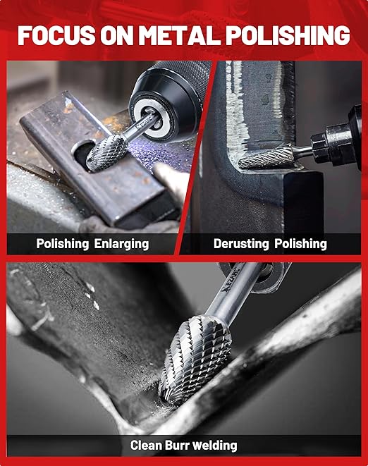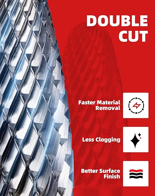 - 【Double Cut Design】The additional cutting edges allow for faster material removal, reduced loading, and a smoother surface finish. Double cut burrs providing better control and precision to ensure stable operation. It suitable for working with a variety of materials, including harder metals like steel and cast iron