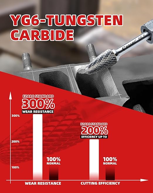 - 【YG6 Tungsten Carbide】Carbide rotary burr bits made of YG6 material boast a high hardness (90 HRA) and excellent wear resistance, allowing them to maintain their cutting edges and perform effectively even in demanding conditions. It customized for professional users